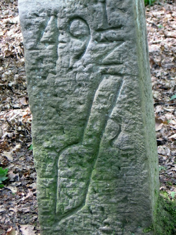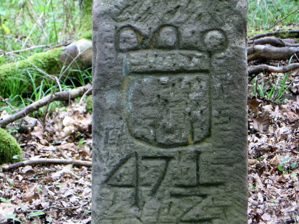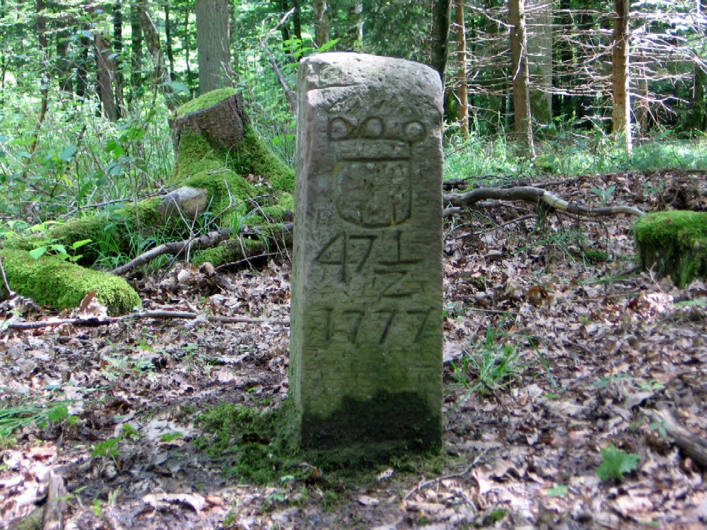 | Hier stehen 5 historische Grenzsteine dicht beieinander, (A019 - A023), heute aber anscheinend keine Gemeindegrenze mehr. | runder Kopf |