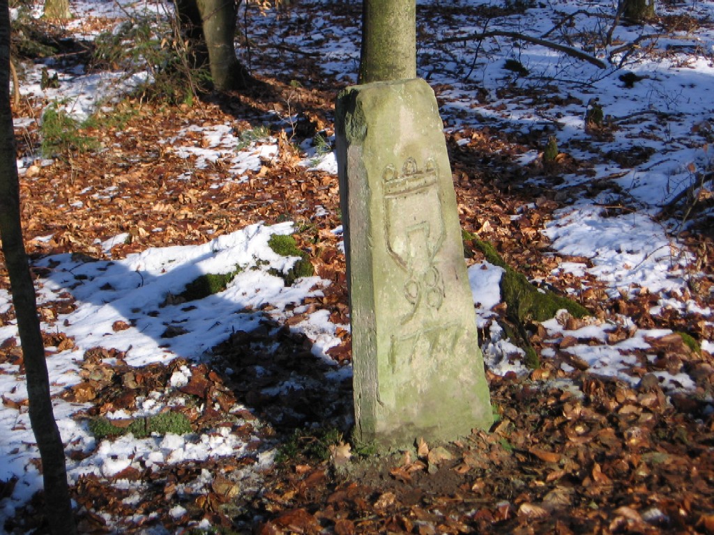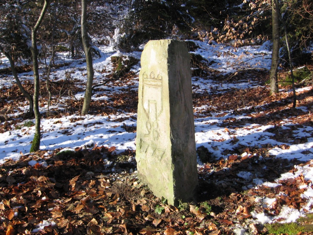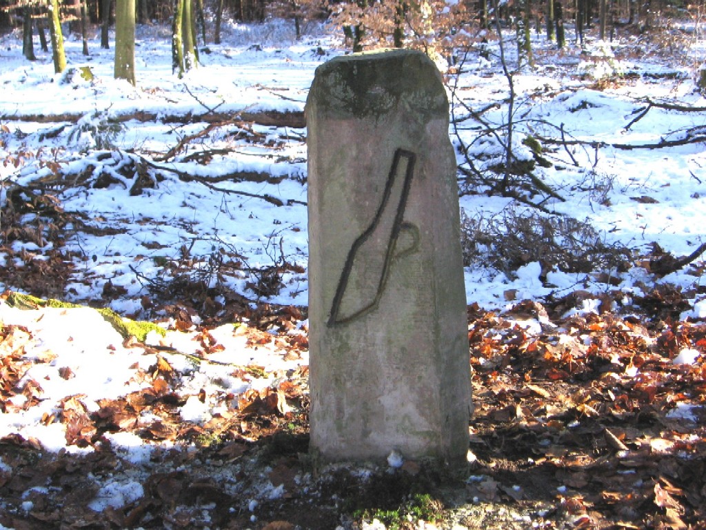 | Dieser Dreimärker steht an dem Grenzpunkt der Gemeinden Herrenberg / Hildrizhausen / Nufringen. Latz - Herrenberg, Pflugmesser - Hildrizhausen, Nufringen. Nach NE geht die Grenze Hildrizhausen-Nufringen, nach 55 Schritten folgt ein einfacher Läufer, nach weiteren 55 Schritten folgt A039. Danach folgen noch A053 und A054. Einheimische nennen diesen Markungsstein zuweilen auch den "3-Länderstein". |
