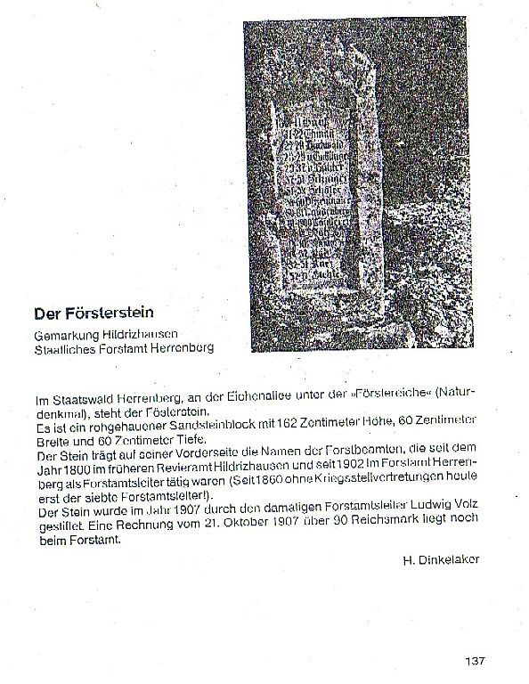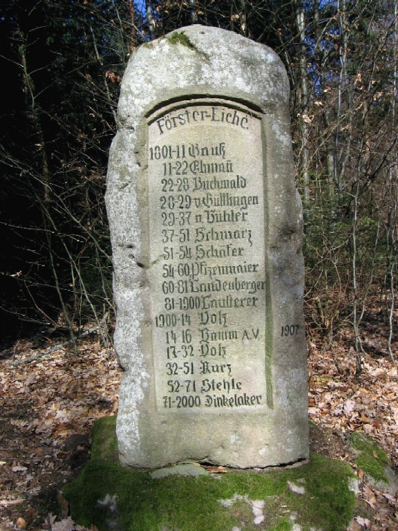 Der Stein trägt auf seiner Vorderseite die Namen der Forstbeamten, die seit dem Jahr 1800 im früheren Revieramt Hildrizhausen und seit 1902 im Forstamt Herrenberg als Forstamtsleiter tätig waren.