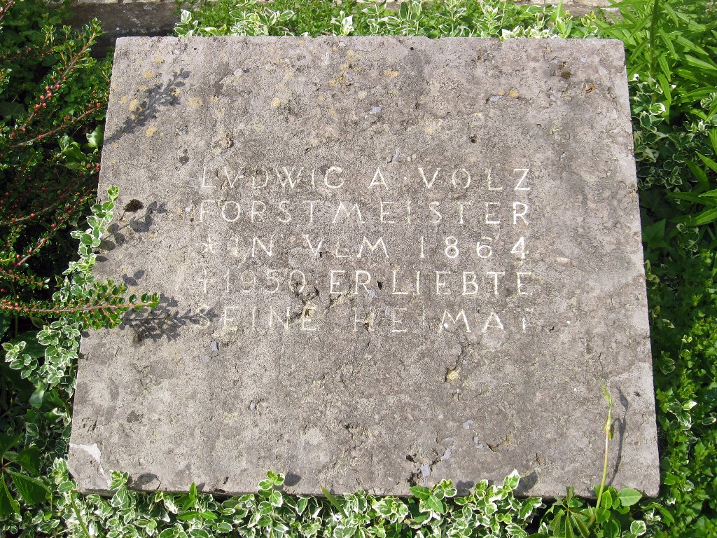 Volz lebte bis 1950 im Waldhaus/Hildrizhausen und fand seine letzte Ruhe an der Nikomedeskirche in Hildrizhausen, Anlage 5. |