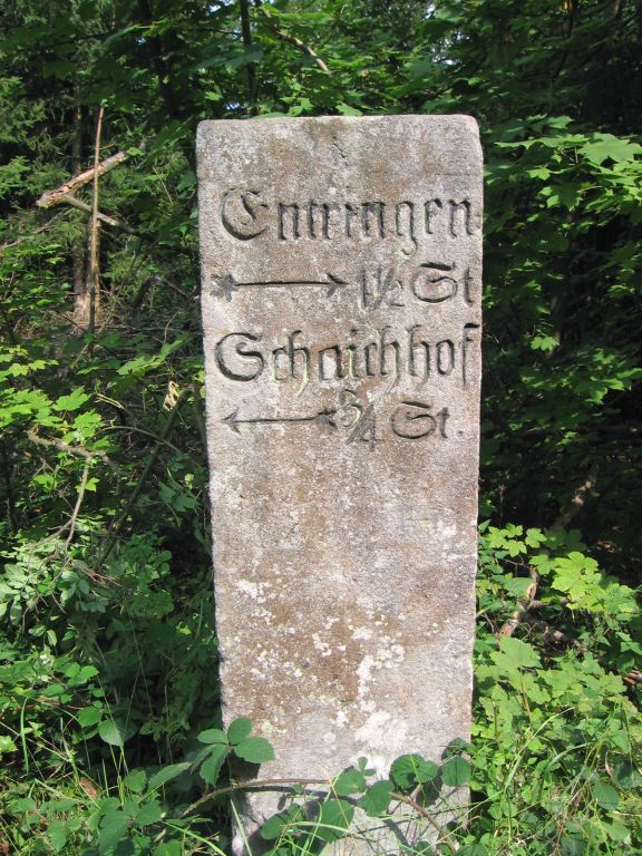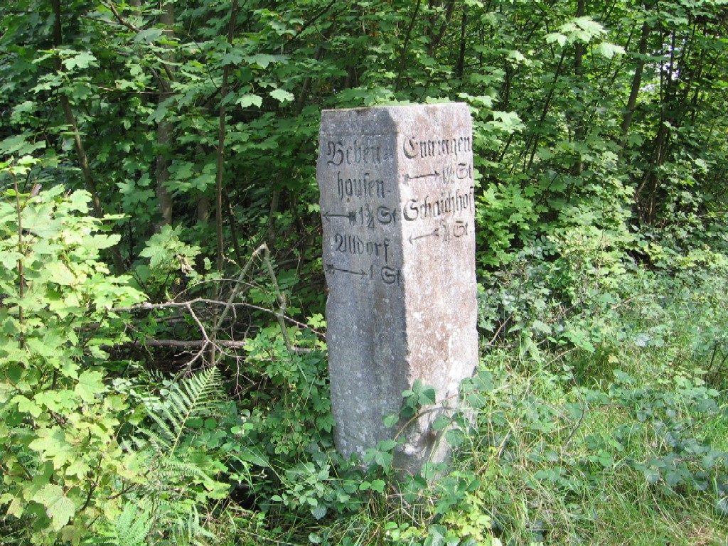 Der Stundenstein gibt die Richtung und die benötigte Zeit zum nächsten Ort an.