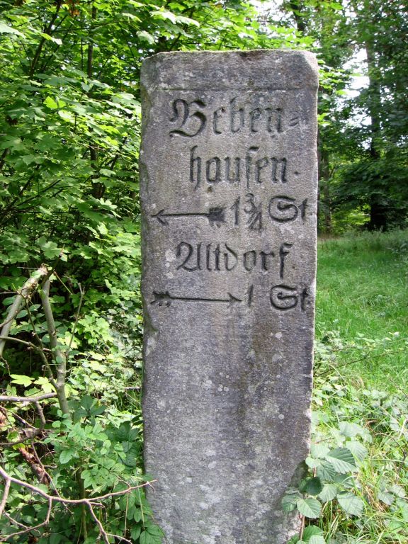 z.B. von hier in 1 1/2 Stunden nach Entringen über die Diebsteigbrücke, in 1 3/4 Stunden dem Brombergtrauf entlang, am Kappelles Brunnen vorbei, zur Teufelsbrücke hinunter, durchs große Goldersbachtal nach Bebenhausen, in 3/4 Stunden zum Schaichhof und in 1 Stunde nach Altdorf.