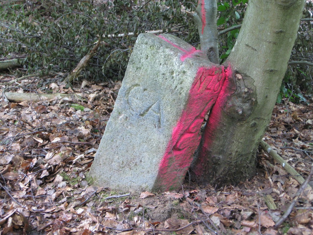 | Der Meierhof zu Altdorf (Kirchplatz 4, siehe Anlage 2-4), erhielt nach der Ablösung der Schönbuchrechte 1821 dieses kleine Waldstück (15 Morgen=4,7ha) zugesprochen (B025, B026, B027,B028). So stehen "CA" für den Gemeindewald der Commune Altdorf, "MA" für den Wald des Meierhofs Altdorf, die Hirschstange für Staatswald Die Anlage 1 zeigt eine Übersicht der Versteinung des Meierwalds. |